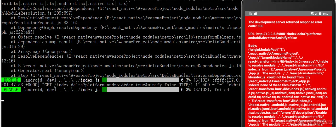 React Native红屏500错误解决办法 小宝s 2022-02-28 92 阅读1分钟 关掉node后台进程,用npm start -- --reset-cache命令重新启动packager服务