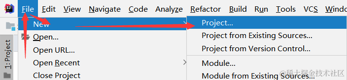 打开开发工具idea,按下图截图方式创建项目。
