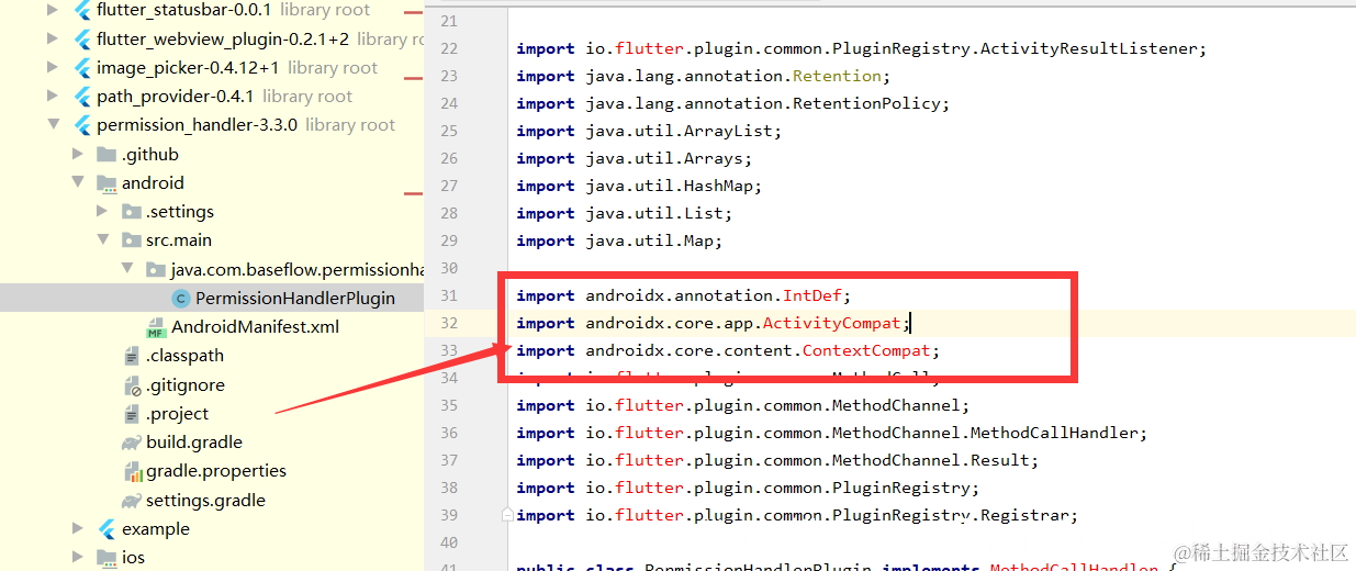 在项目引入了permission_handler: ^3.2.2后,项目出现报androidx而无法编译的情况,我最开始是想将项目转andoirdx,结果不成功,最好选择将androidx去掉。