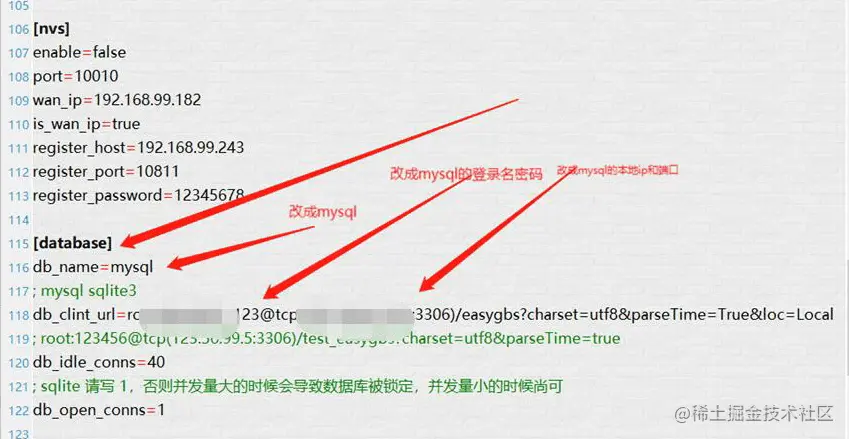 3)最后在easygbs.ini——database模块调整配置(如图);