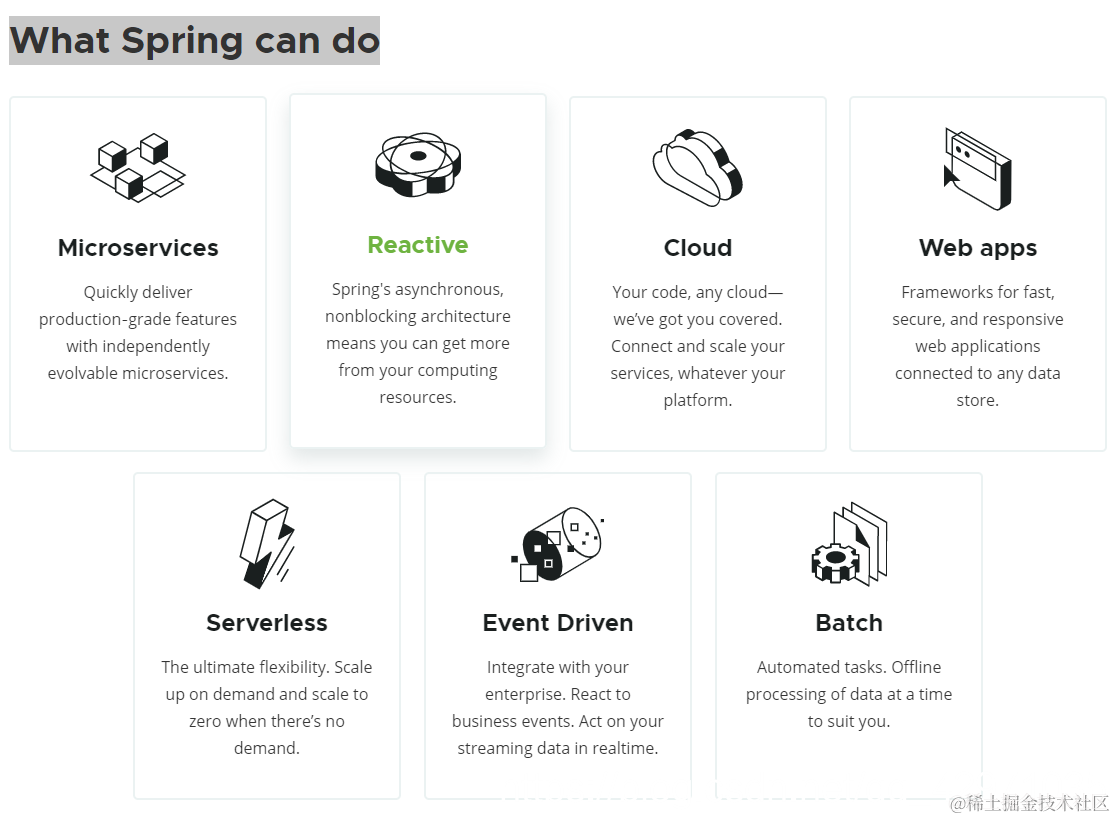 点击“WHY SPRING”,我们可以看到官网的介绍: