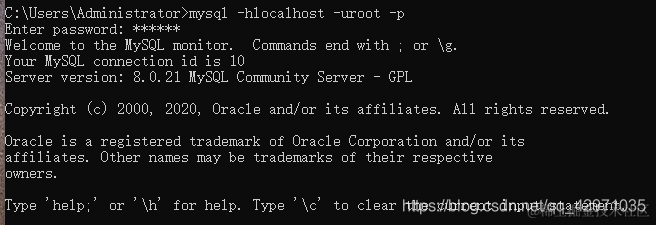 切记:-h和localhost之间没有空格,-u和root之间也没有空格,-p之后米有分号。