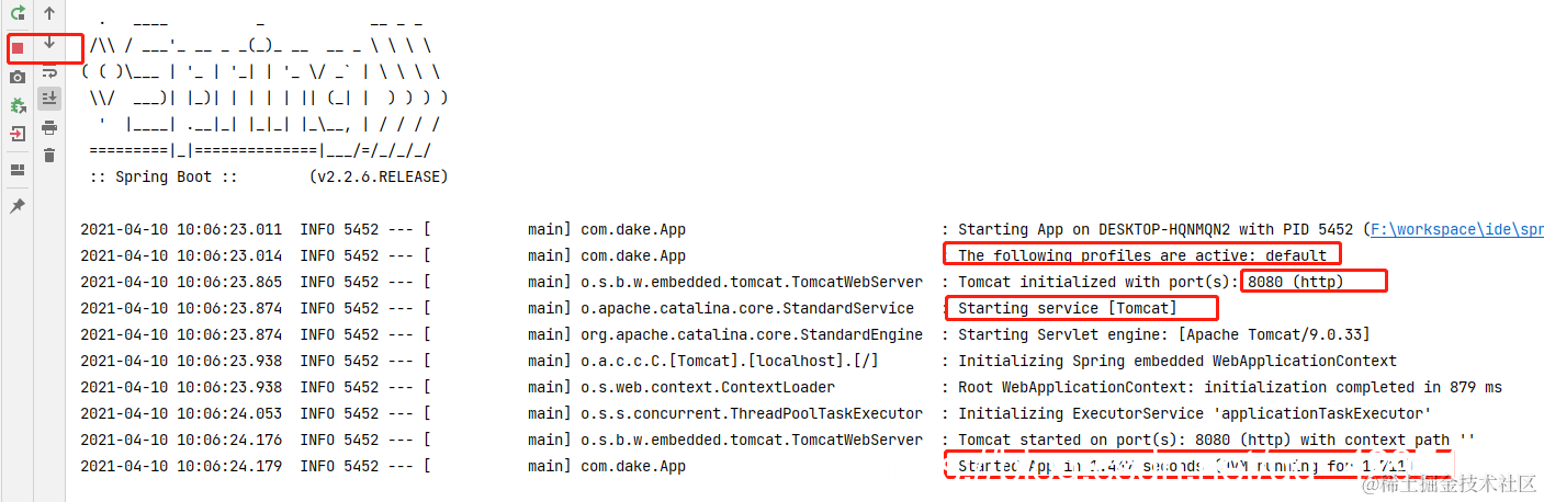一个正确的SpringBoot项目启动后的控制台输出如下图所示(每个人的配置、启动项不一样,控制台的输出会不一样):