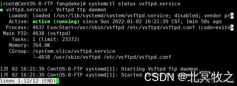 注意:正在将请求转发到“systemctl enable vsftpd.service”。
