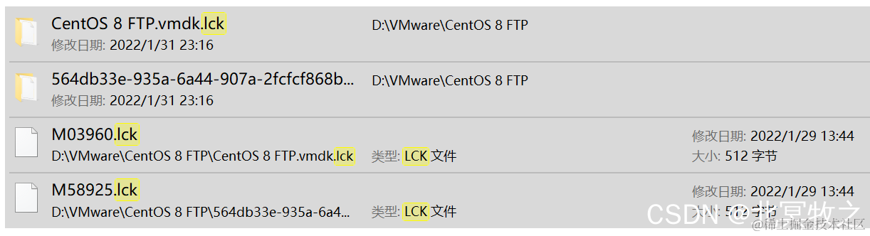 按照文章操作,删除虚拟机安装目录下的“.lck”文件以及对应文件夹下的文件。