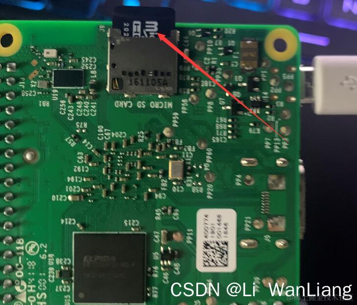 第三步: 将内存卡取下插到树莓派上面,注意不要插反了。