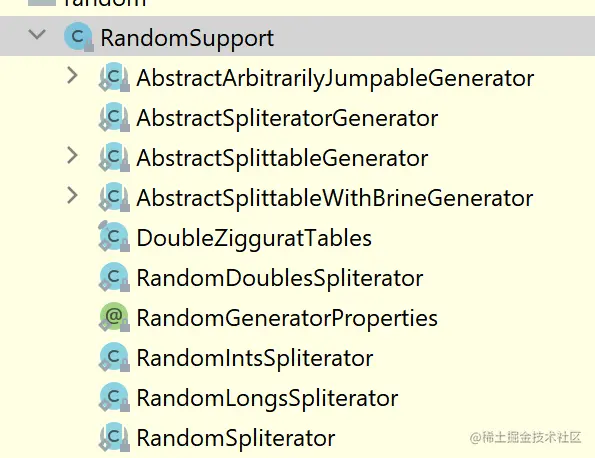 而这个 AbstractSplittableGenerator 就定义在 RandomSupport.java 当中,是 RandomSupport 一个内部类。