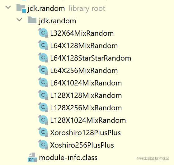 你以为这就没了?不是的。提案的说明当中提到,提案的目标不是实现很多的随机数产生算法,不过这次还是添加了一些常见的实现,所以你会在 JDK 17 当中看到多了一个模块: