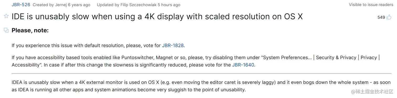 我有个 2015 款的 MacBook Pro,之前我用它连 4K 外接显示器写代码,发现很快电脑就发烫发热,IDE 也会卡得不成样子。一开始我以为是我的电脑快不行了,后来我发现很多用最新款 MacBook 的人也在抱怨 IntelliJ IDEA 的垃圾性能。