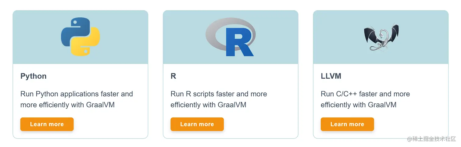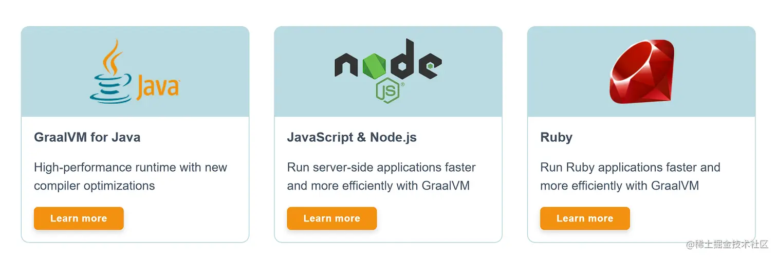 当然,这也不是说 Java 就不能编译成 Native 二进制可执行程序直接运行,因为我们还有 GraalVM,这家伙居然还支持 Node.js 和 Ruby: