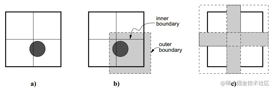 在上面提到的松散四叉树的结构下,结点有内边界(inner boundary)和外边界(outer boundray)。