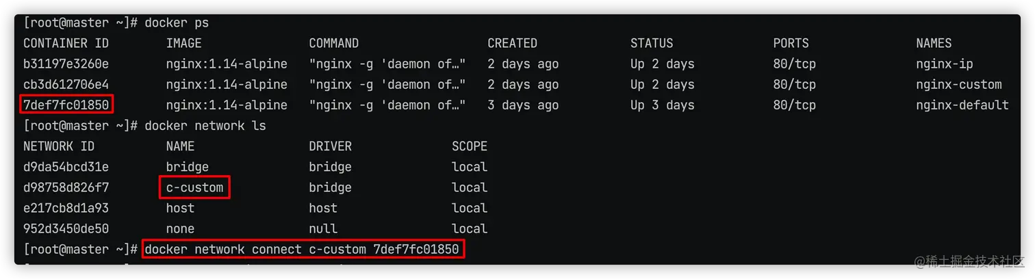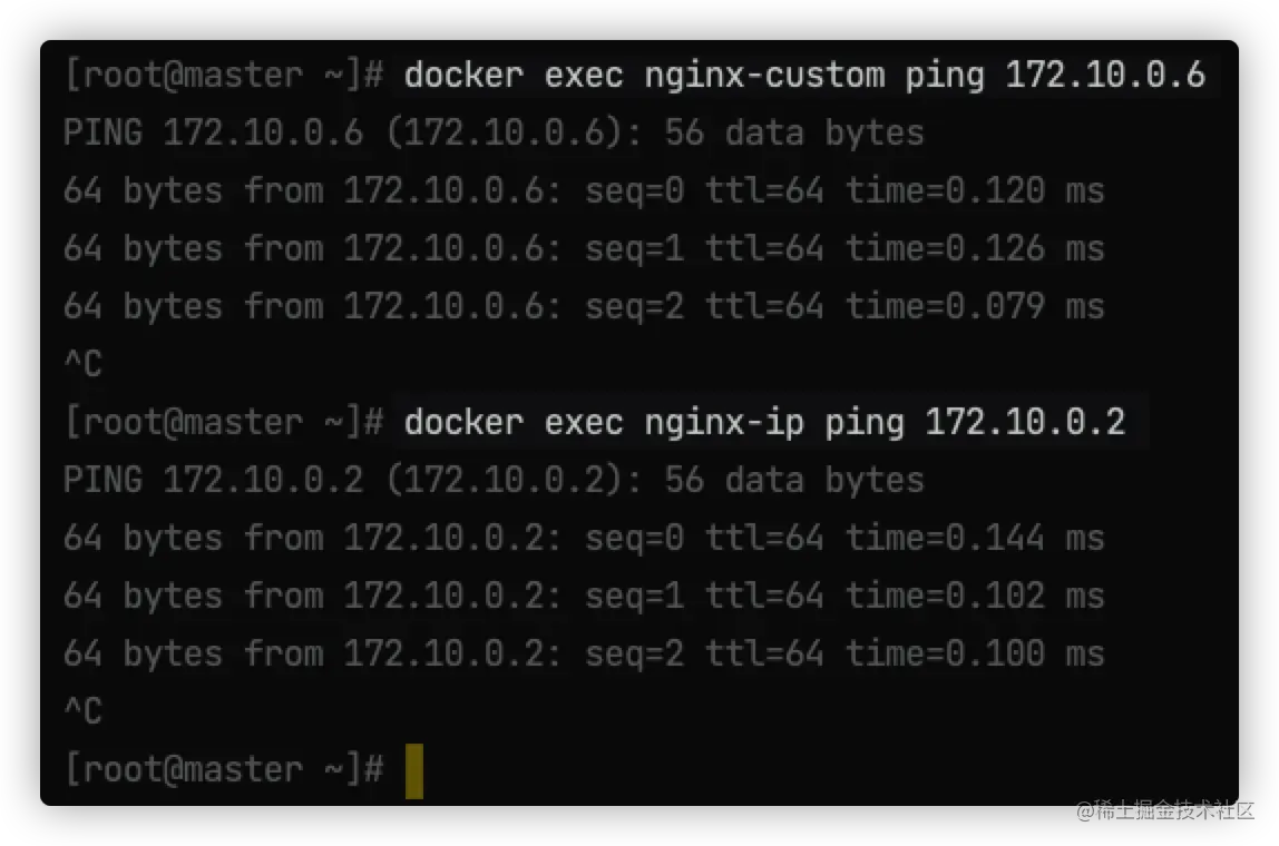 小菜农看着图发呆了一会,这图其实已经挺清晰了,nginx-custom 和 nginx-ip 之间肯定能够互相连通,小菜农验证一下猜想
