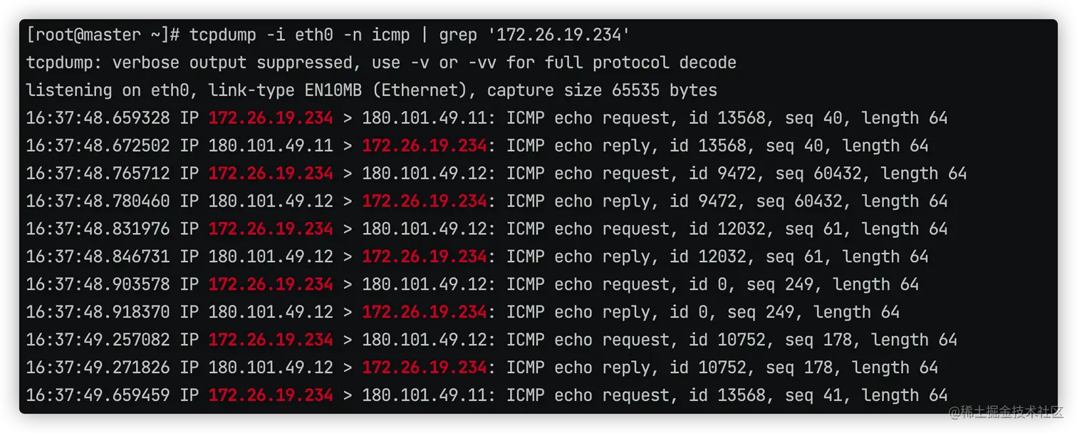 “啊哈!果然变了,这个时候ping包的原地址,变成了 ehp0 的 IP 172.26.19.234”