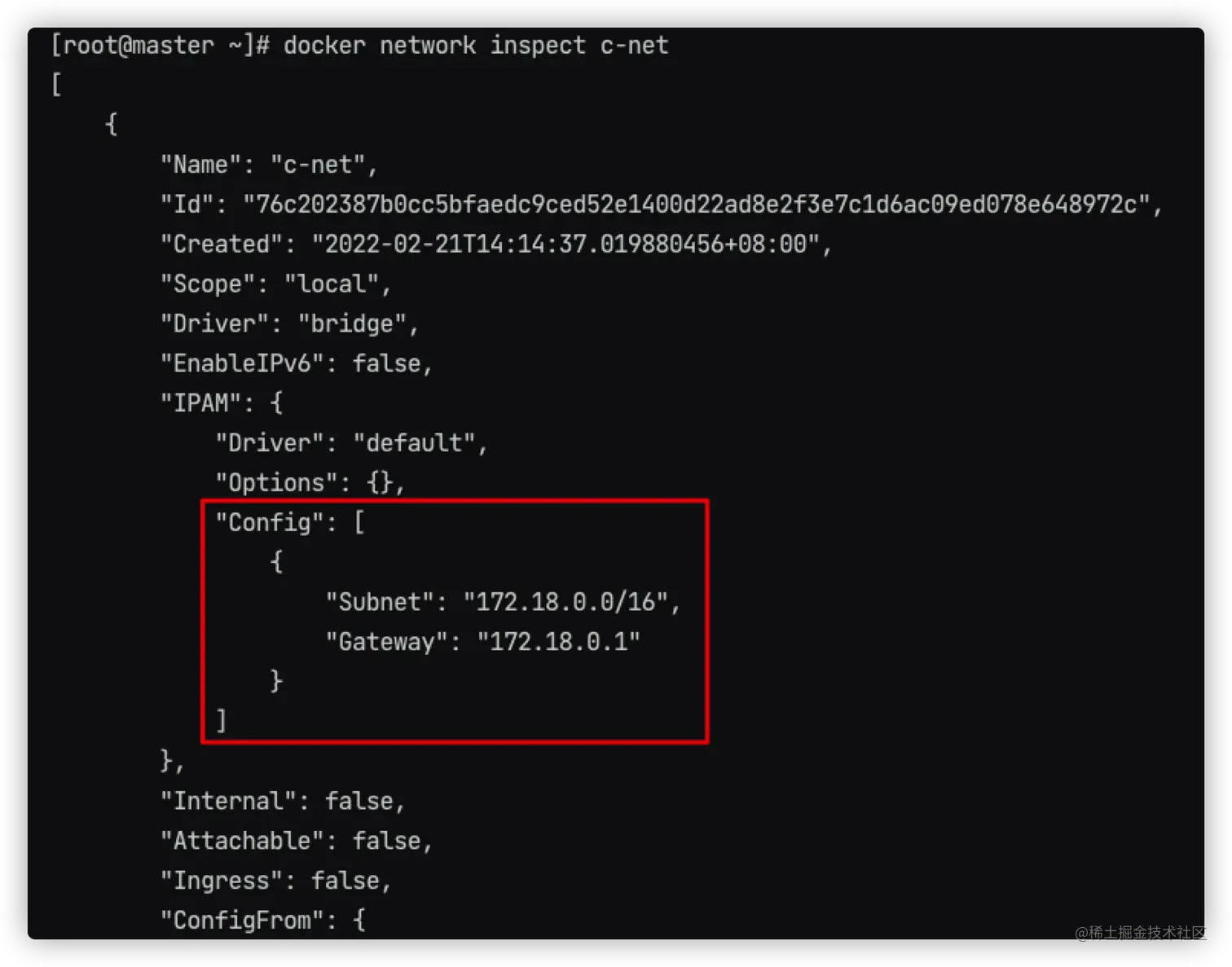 看到这结果,小菜农忍不住笑了起来,真有我的!这 subnet 和 gateway 不就是我想要的吗!~