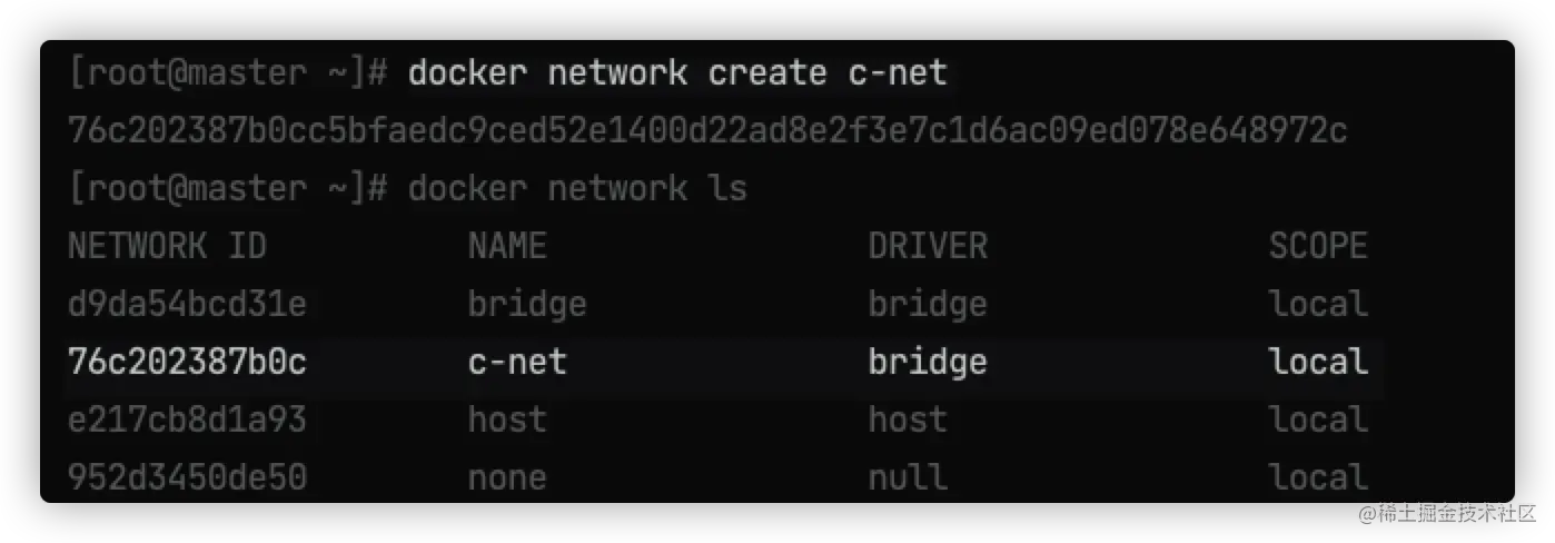 果然,docker 已经支持用户创建自定义网络。很快呀!小菜农便在终端输入了创建网络的命令: