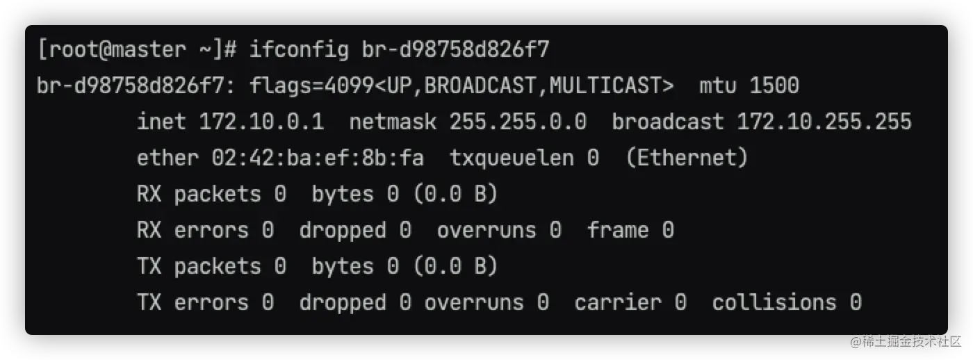 这不就成了吗!而且宿主机上也有了新的网络,网段为 172.10.0.0/16,网关为 172.10.0.1