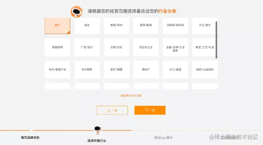 勾选你企业所属的行业。几十多种细分行业,每个行业都根据多年经验积累,归纳出特定的行业品牌特质,满足不同行业的风格需求。