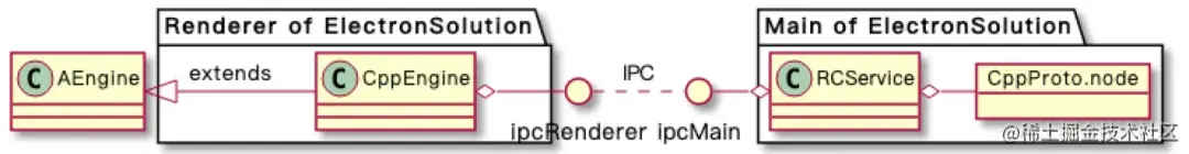 - Renderer 包中定义 CppEngine 类,继承自 Engine 包内的 AEngine 抽象类,依然通过 webPreferences.preload 用来作为主进程的代理,通过 ipcRenderer 与主进程维持通信