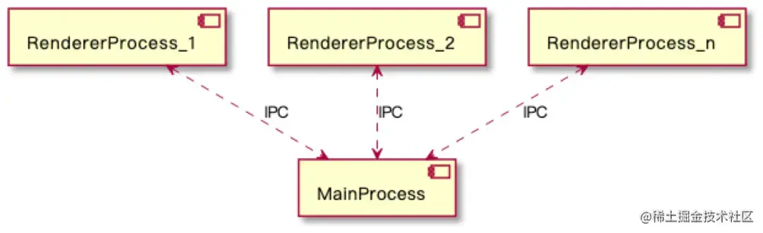 (多个渲染进程通过 IPC 通信共享主进程状态)