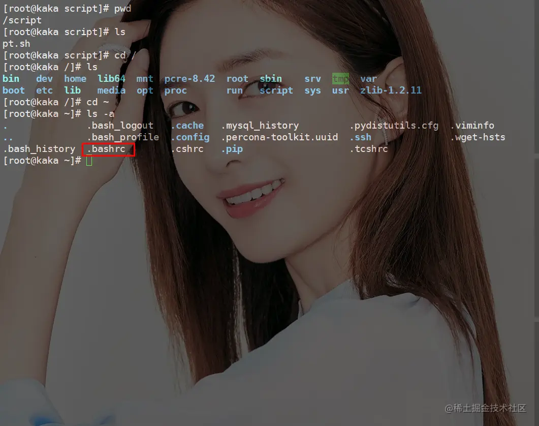 那你得知道.bashrc文件在哪吧!位置就在当前用户的根目录,执行cd ~后即可看到此文件