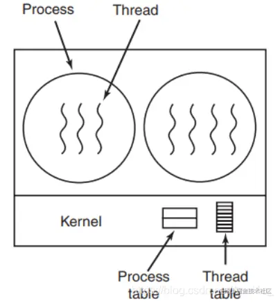 | 调度算法可以有应用程序设定 | 若一个进程的某个线程调用了阻塞的系统调用,那么该进程的所有线程也将会被阻塞,页面失效也会有同样的问题 |