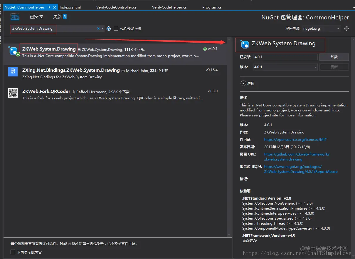 NuGet包引入:ZKWeb.System.Drawing,如下所示: