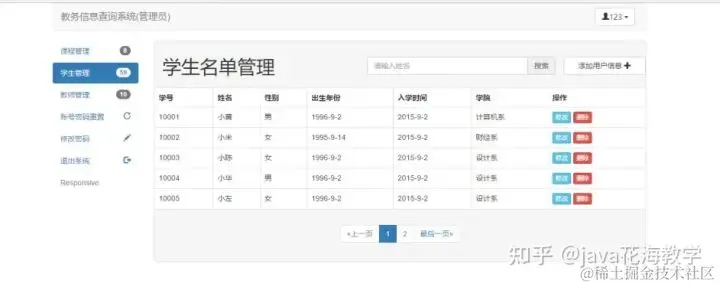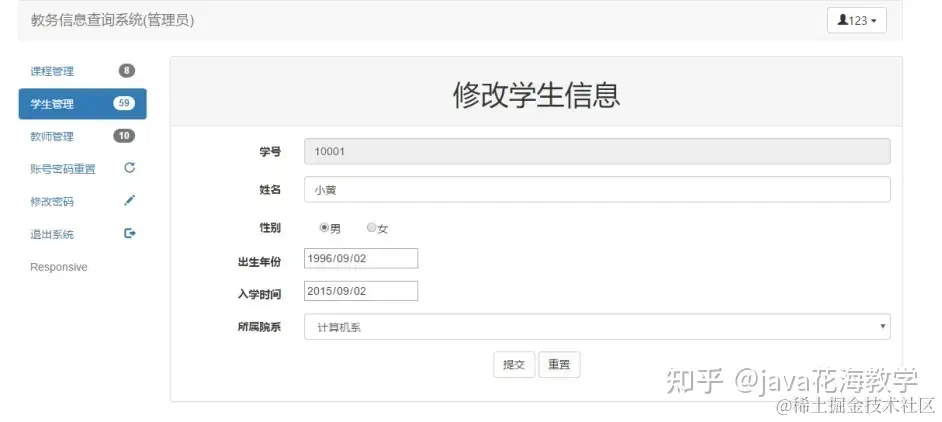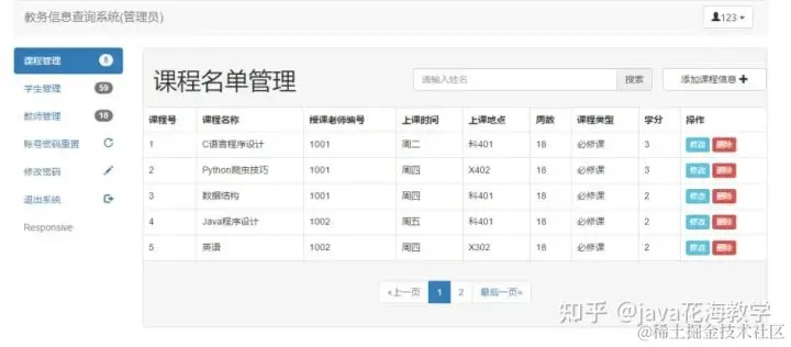 (管理员可对 教师信息、学生信息、课程信息 进行 增删改查 操作,管理员账户,可以重置非管理员账户的密码)