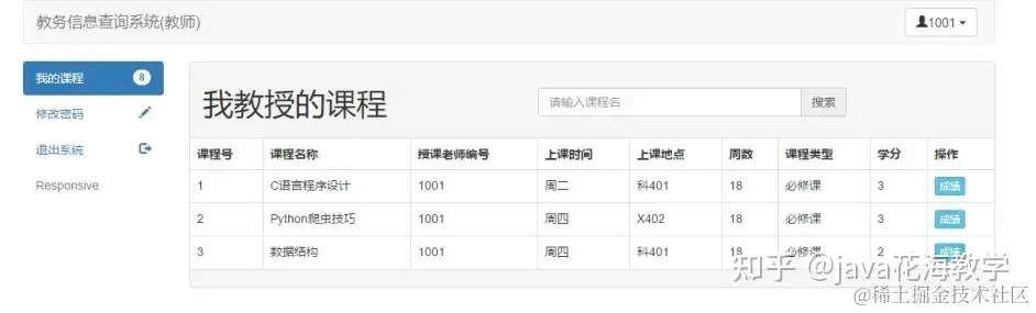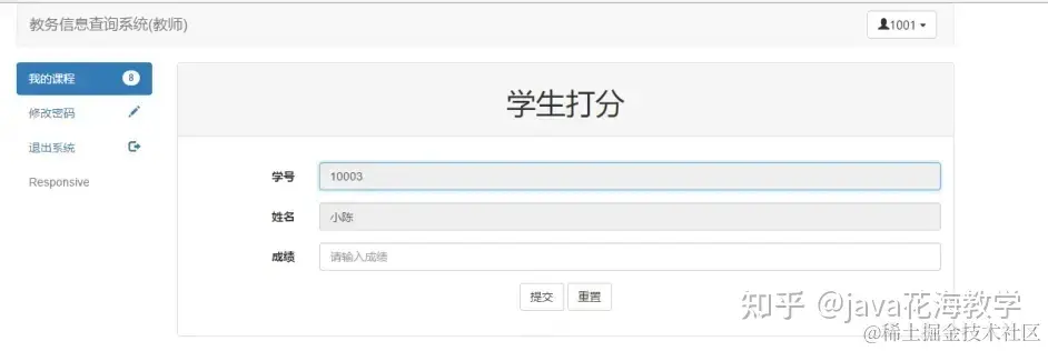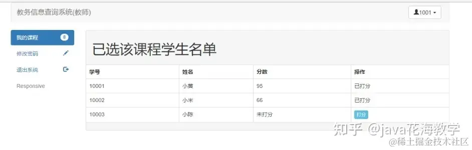 (教师登陆后,可以获取其,教授的课程列表,并可以给已经选择该课程的同学打分,无法对已经给完分的同学进行二次操作)