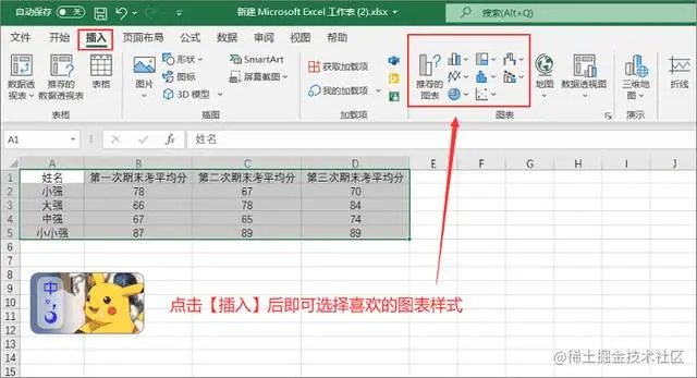 步骤2.选中所要转化为图表格式的单元格后,在上方工具栏中点击【插入】,随后在各个图表样式中选择自己心仪的那一种即可。