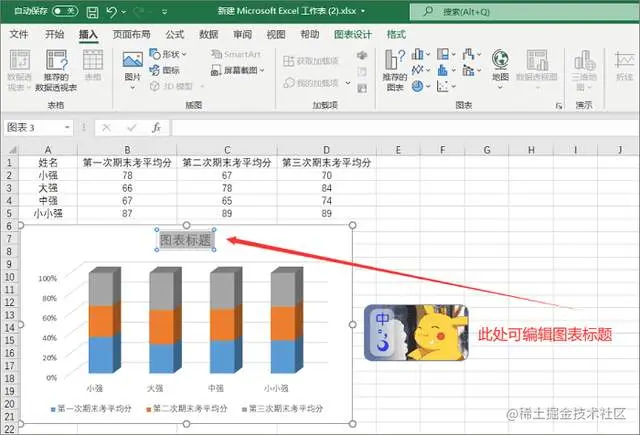 图表插入后还可修改其标题,建议修改一下,比较容易分清楚图表所呈现的主题。