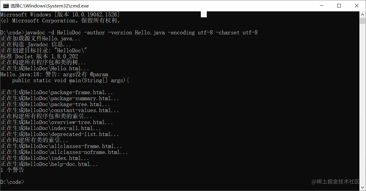 -d:生成一个文件夹接受生成的文档文件,后面的 HelloDoc 为文件夹名。