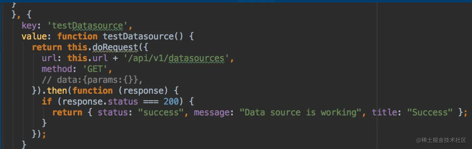 testDatasource()//使用的数据源配置页面,以确保连接工作
