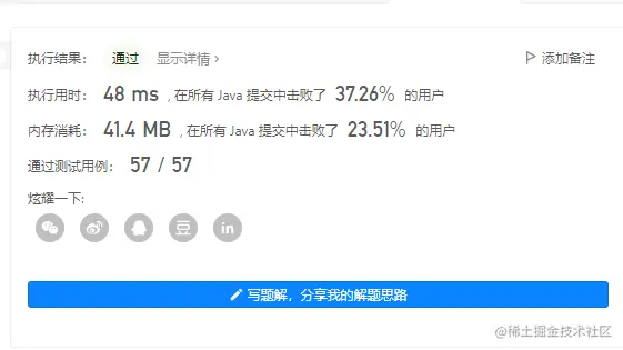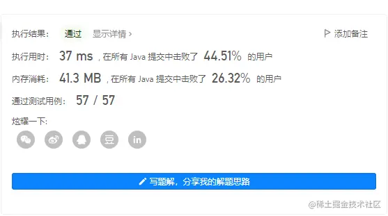 思路二之哈希表法leetcode提交运行结果截图如下: