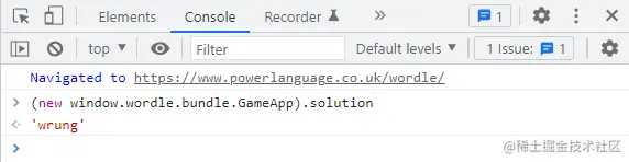 因此,我们需要做的是用new window.wordle.bundle.GameApp 来实例化它,然后我们可以通过.solution 来获得答案属性。