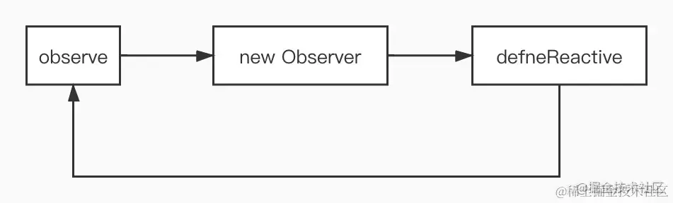流程大概是这样:observe -> Observer -> defineReactive -> observe -> Observer -> defineReactive 递归