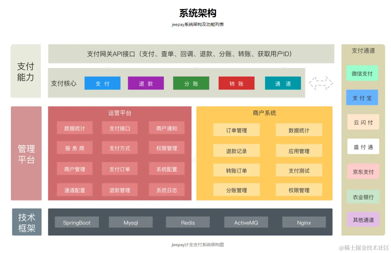 项目介绍: Jeepay是一套适合互联网企业使用的开源支付系统,支持多渠道服务商和普通商户模式。已对接微信支付,支付宝,云闪付官方接口,支持聚合码支付。Jeepay使用Spring Boot和Ant Design Vue开发,集成Spring Security实现权限管理功能,是一套非常实用的web开发框架。