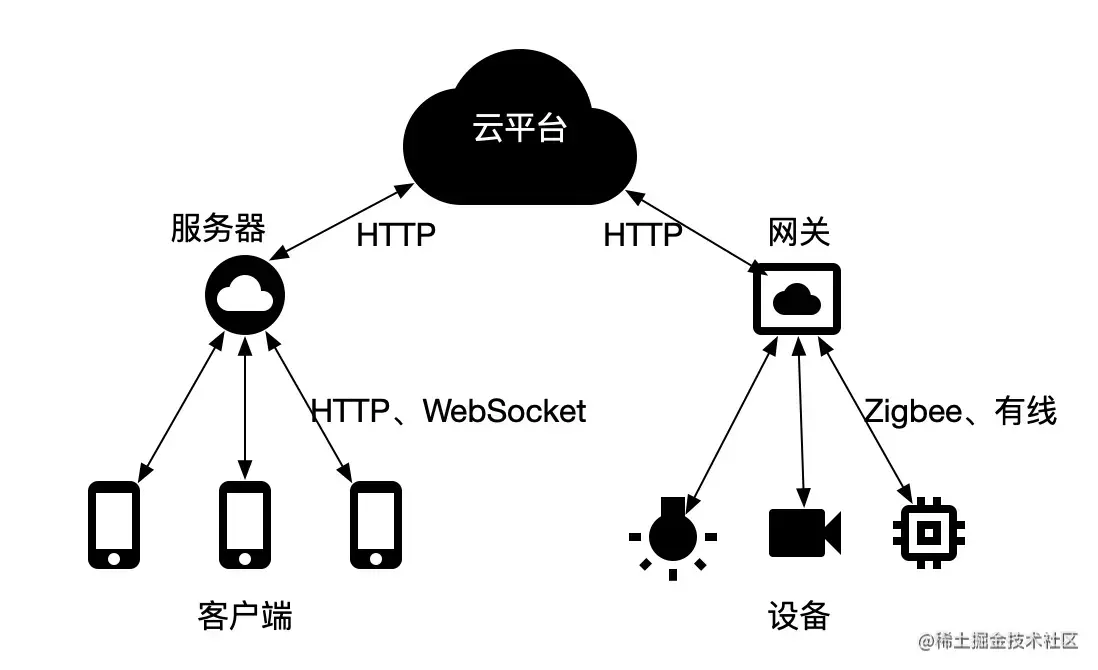 网关会将设备的状态上报给云平台,云平台就将状态下发给客户端了。同样,客户端控制设备就是个反向的过程。当然如果以后5G普及了,设备直接通过5G网络连接云平台,因为5G功耗低、延迟低、速度快,就可以不需要网关了。