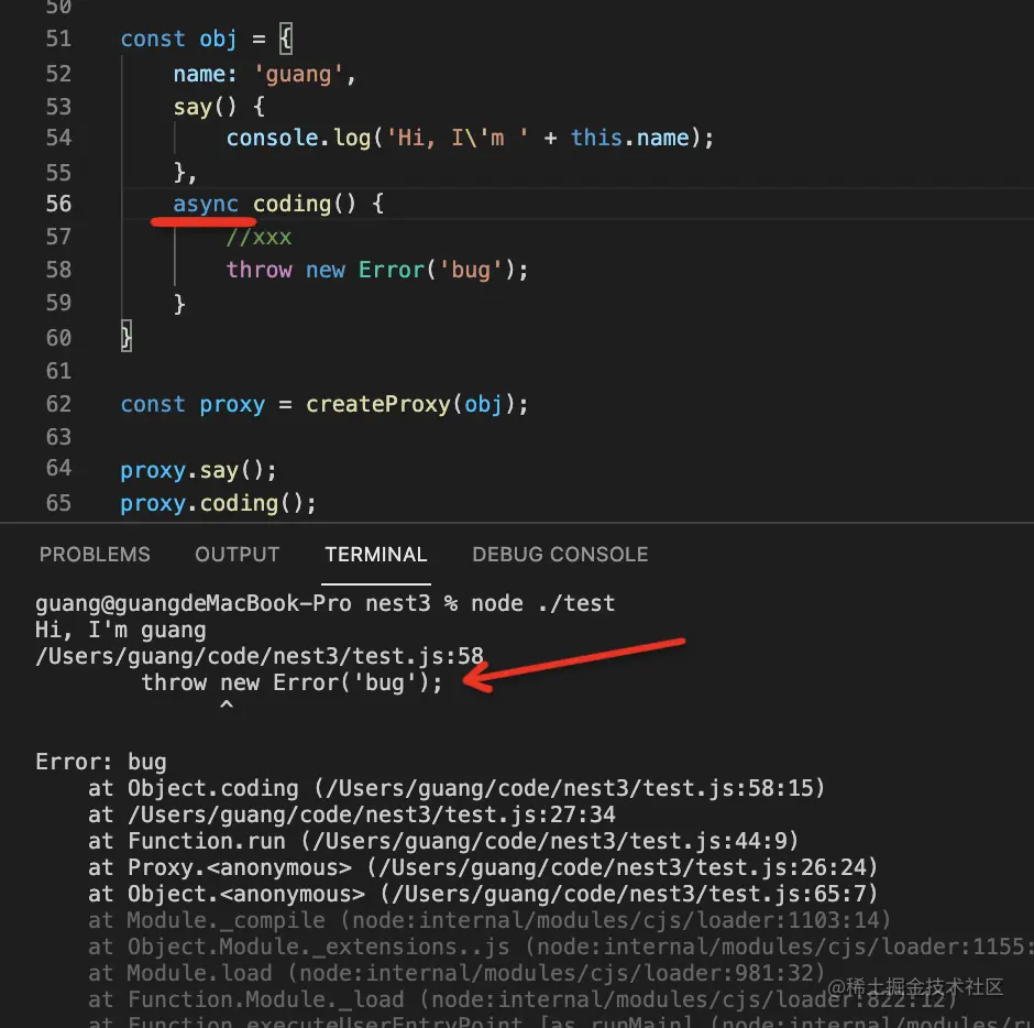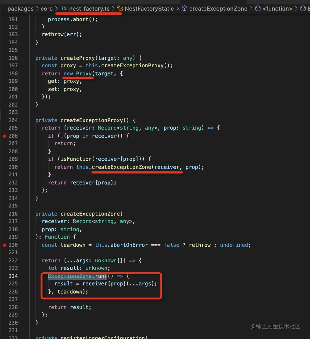 因为这段逻辑是我从 Nest.js 源码里摘出来的,它源码里就是这样来给对象添加异常处理的: