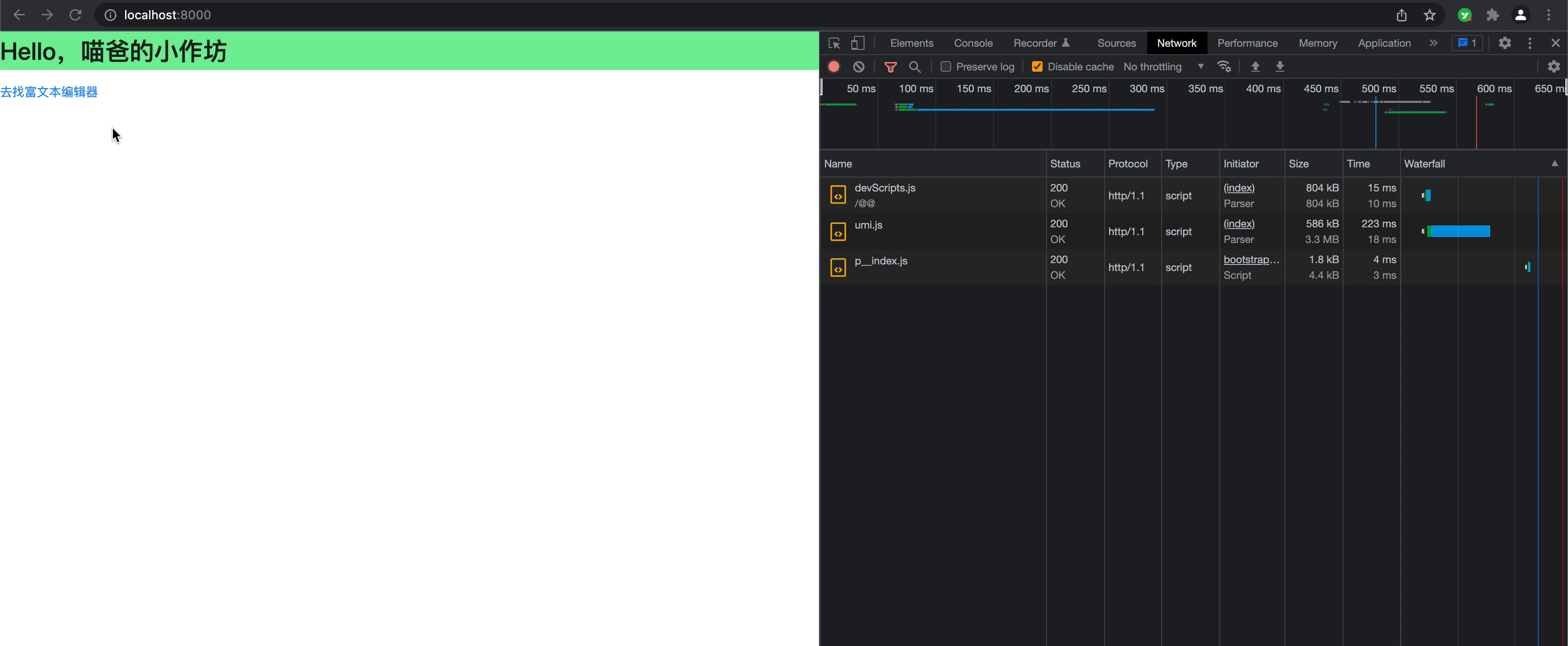 我们惊奇的发现,好像并没有什么用,我们自己写的loading框,一瞬间就没了,页面还是白屏中在加载富文本编辑器引用的外部资源,然后过了一段时间才显示出来,为什么是这样?