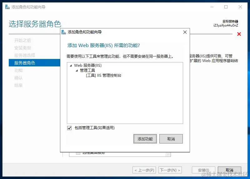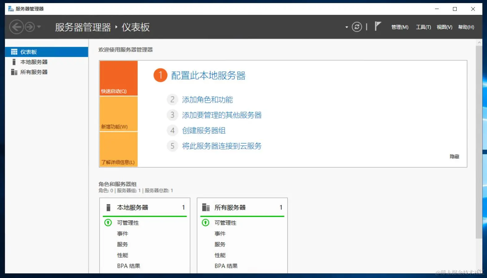 - 在“服务管理器”界面中,点击“添加角色和功能”。