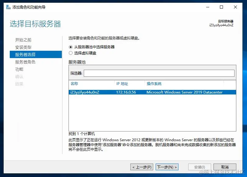 - 在“选择目标服务器”界面,选择当前服务器,点击“下一步”。