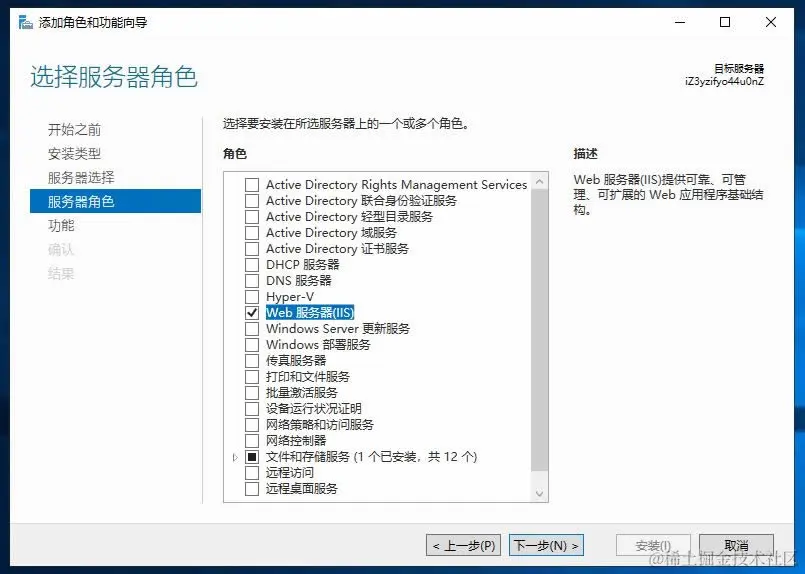服务器程序运行在 IIS 中,准备好操作系统后,首先安装 IIS。