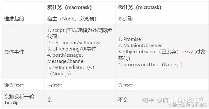- 以上便完成一轮事件循环,当执行栈为空时,JavaScript引擎会不断检测微任务队列和任务队列,把队列中的任务放到执行栈中执行,循环往复。