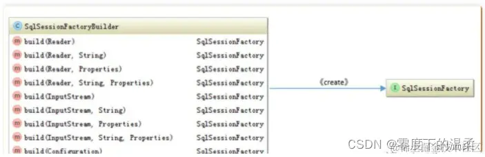 由于构造时参数不定,可以为其创建一个构造器Builder,将SqlSessionFactory的构建过程和表示分开 :
