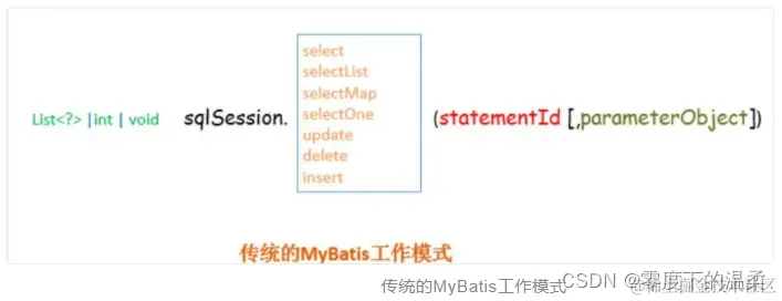 这是传统的传递Statement Id 和查询参数给 SqlSession 对象,使用 SqlSession对象完成和数据库的交互 ;MyBatis提供了非常方便和简单的API,供用户实现对数据库的增删改查数据操作,以及对数据库连接信息和MyBatis 自身配置信息的维护操作。
