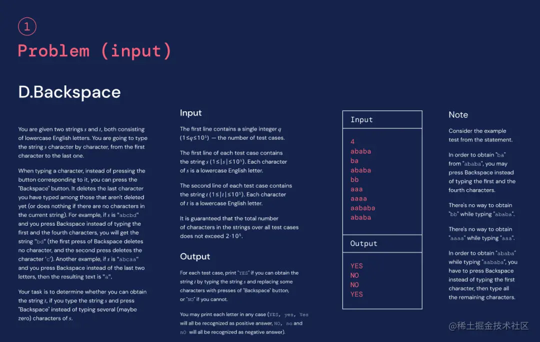 步骤 1: 将问题输入 AlphaCode。在这个示例中,要求在不输入字母的前提下,通过 Backspace 键将一个短语转换成另一个短语。
