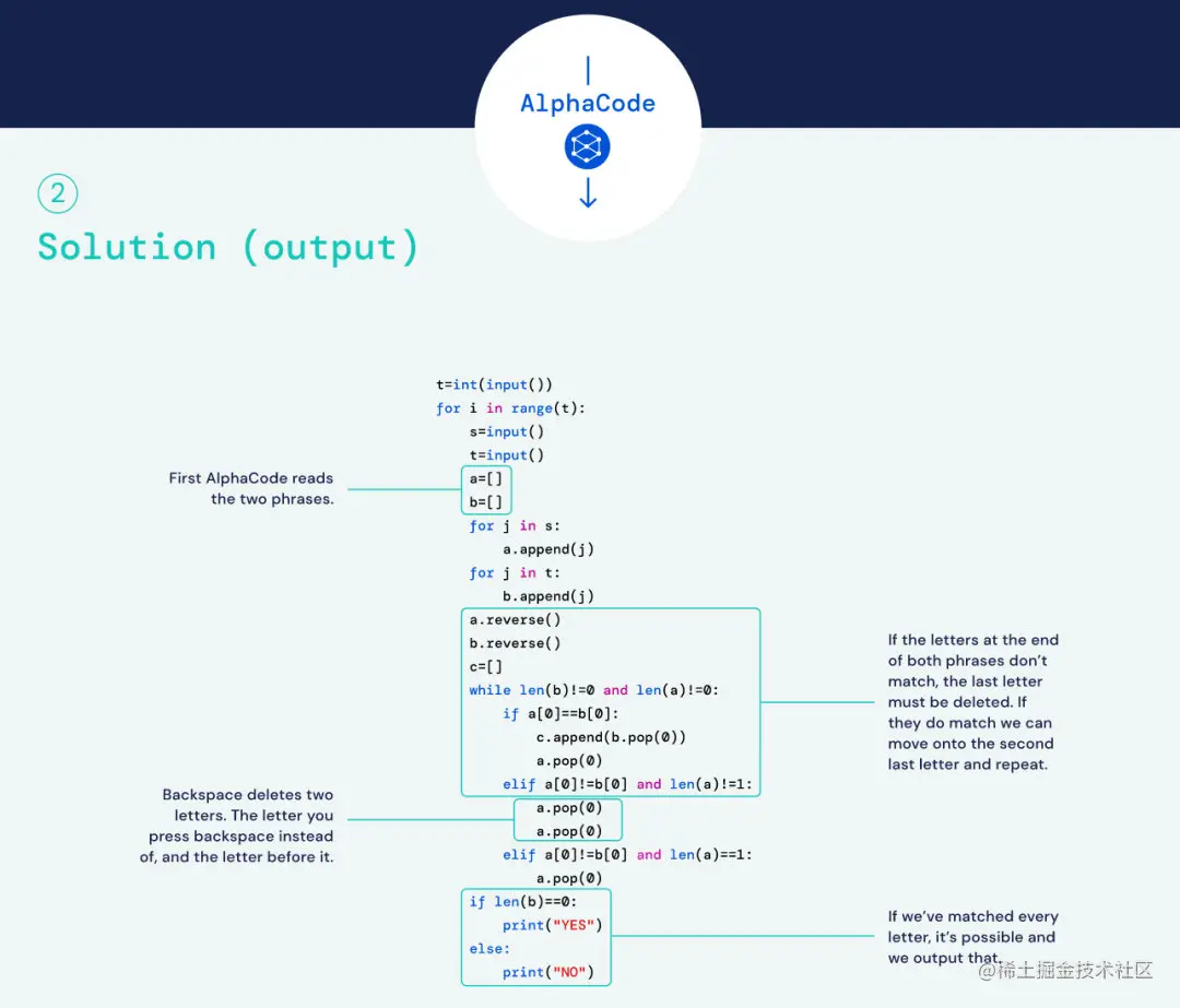 步骤 2: AlphaCode 读取问题后生成代码。这类似于人类工程师处理问题的方式,即阅读问题、编写解决方案,最后提交。