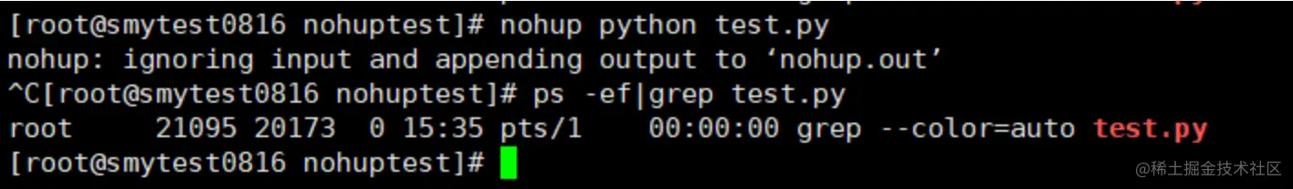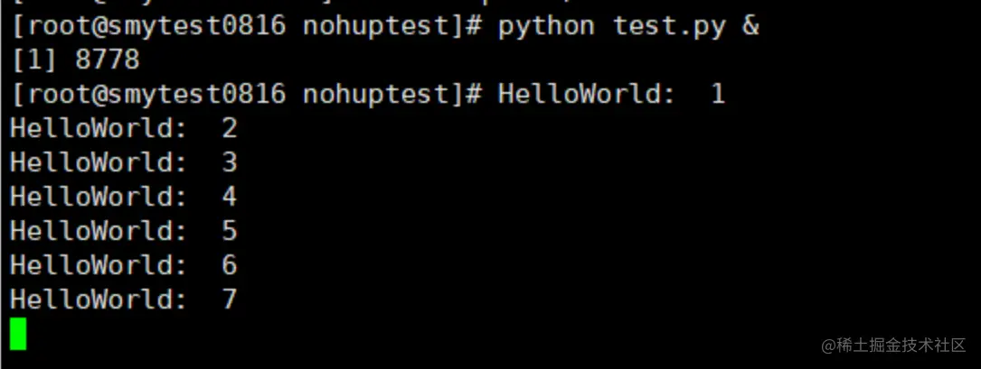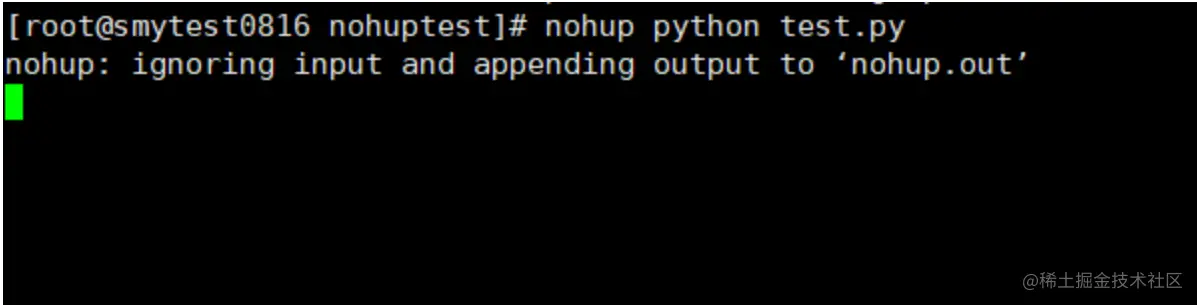 此时重新使用nohup执行一下这个python脚本:nohup python test.py