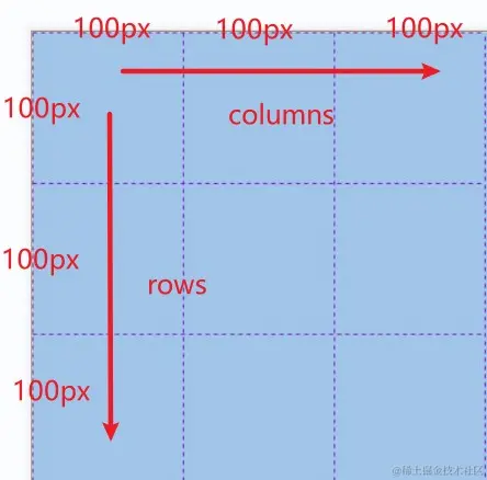 grid-template-columns: 100px 100px 100px;=> 表示纵轴设置三个item,并且每个的Y轴长度为100px; grid-template-columns: 100px 100px 100px;=> 表示纵轴设置三个item,并且每个的Y轴长度为100px;