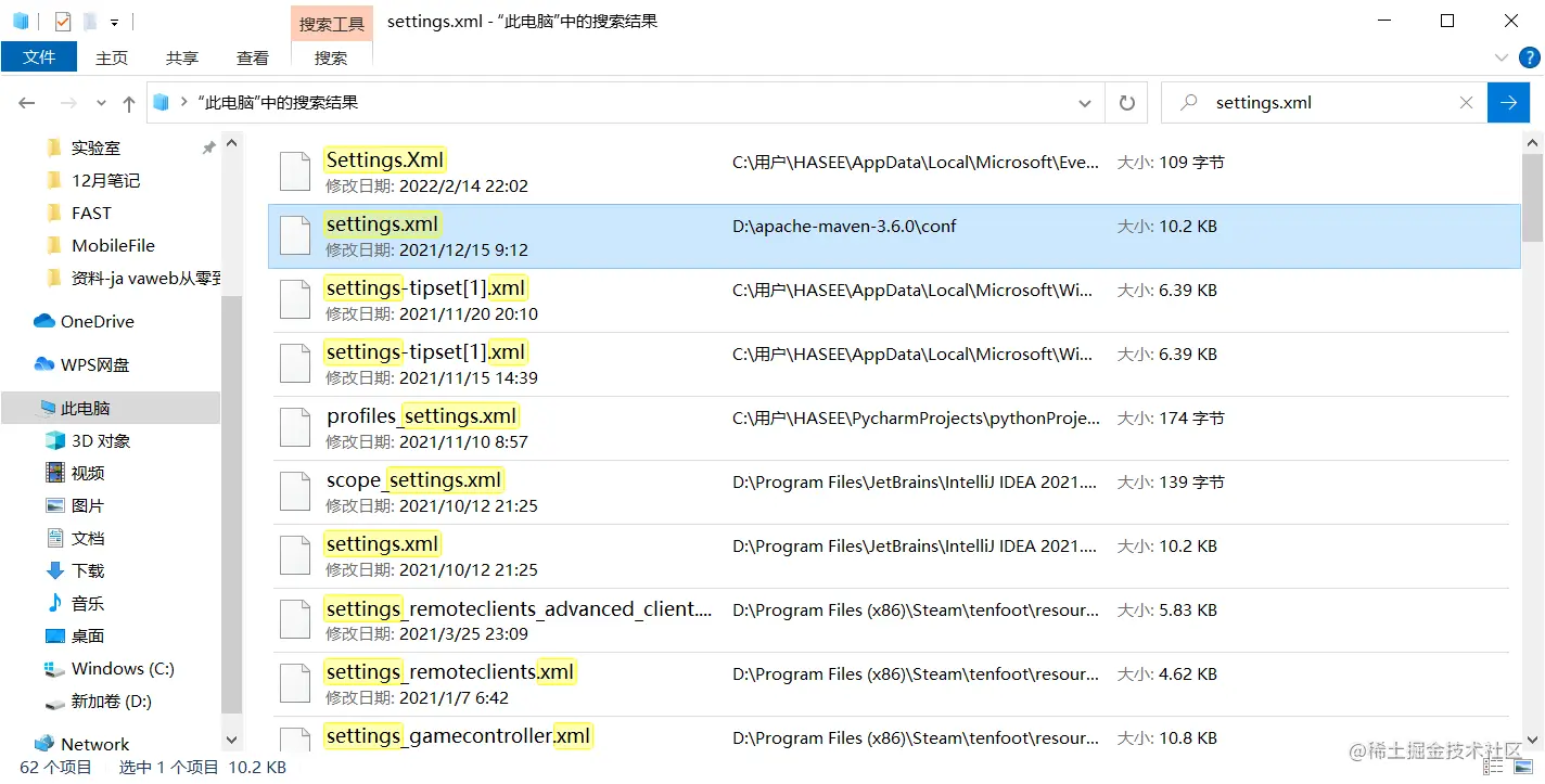 所以没办法我也忘记了文件在哪里了,就搜索了一下settings.xml